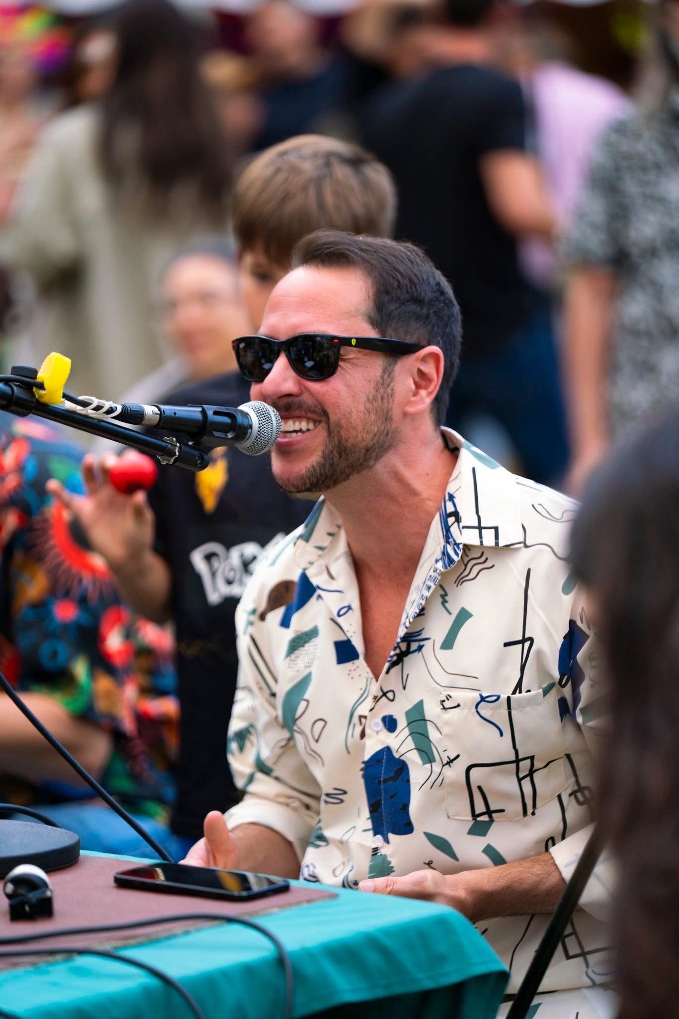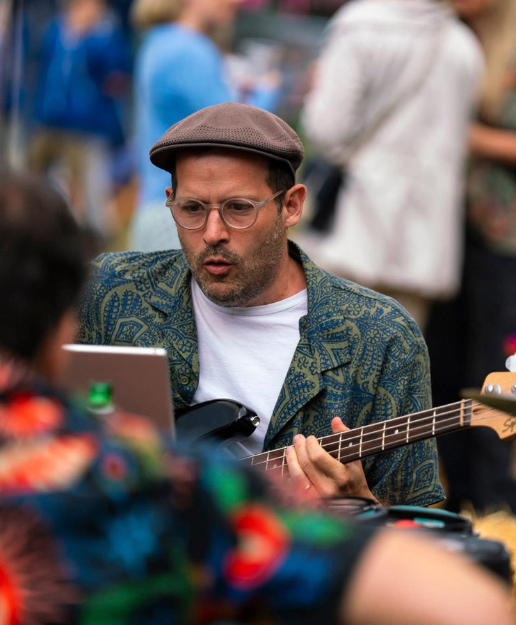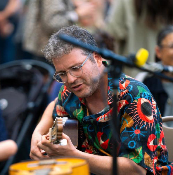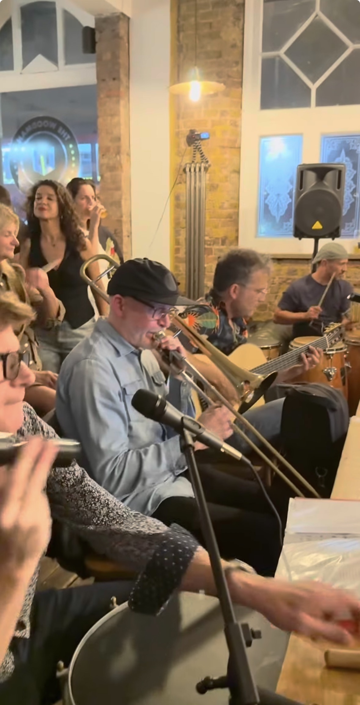 Space At The Table brings the Brazilian Roda de Samba to the UK. Musicians gathered around a table in the middle of the crowd, creating a shared musical experience.